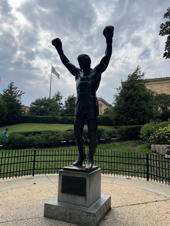 Standing at the top, we felt a surge of inspiration, channeling the spirit of determination and triumph that the steps symbolize. After soaking in the view, we made our way down to the base, where the famous Rocky statue stands. We couldn’t resist snapping a few pictures and giving a playful shout of "What's up, champ?"
