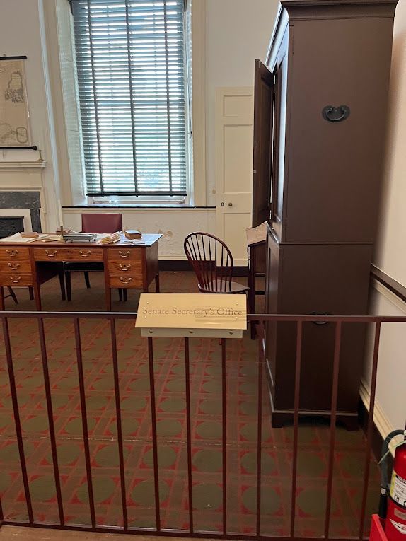 The second floor of Congress Hall was used by the Senate, and it retains much of its original charm. The rooms are filled with period furnishings and portraits of early American leaders, providing a window into the past. We imagined the intense debates and pivotal decisions that shaped the young nation taking place in those very chambers.