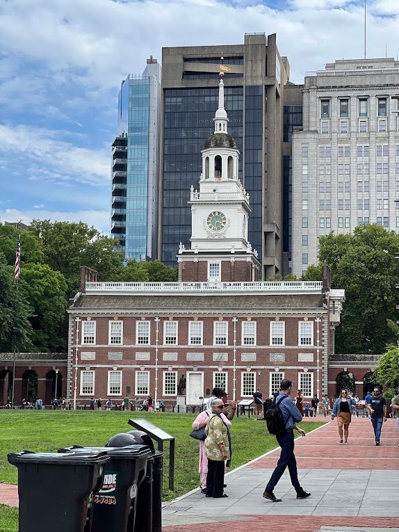 After our visit to the Liberty Bell Center, we walked across the street to Independence Hall, hoping to join a tour. Unfortunately, the tours were fully booked, and we needed tickets. Oops!