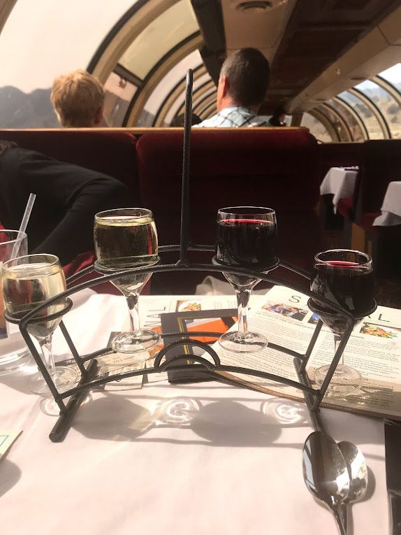 Sipping on the exquisite wines, we marveled at the harmony between the flavors and the scenery outside. The curved windows allowed us an uninterrupted view of the gorge, adding a touch of magic to our dining experience.